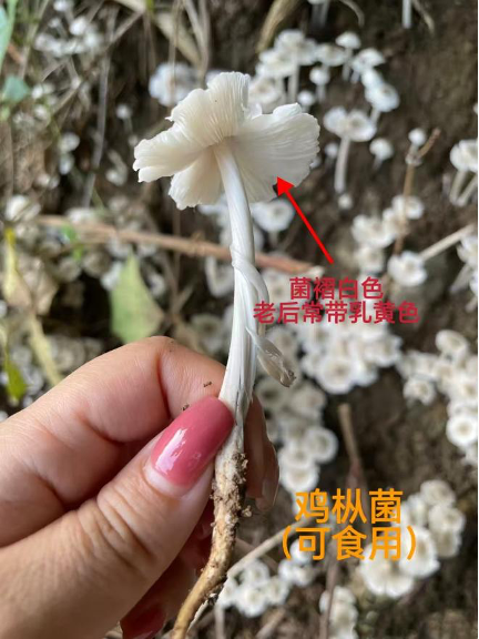 一、两步快速分辨有毒的“近江粉褶蕈”和可食的“鸡枞菌”