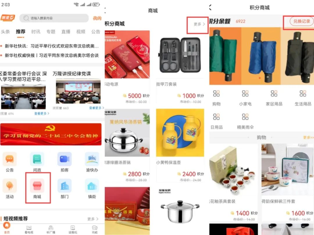 进入铜梁APP,点击“商城”—“更多”—“兑换记录”,即可查看未领取商品。
